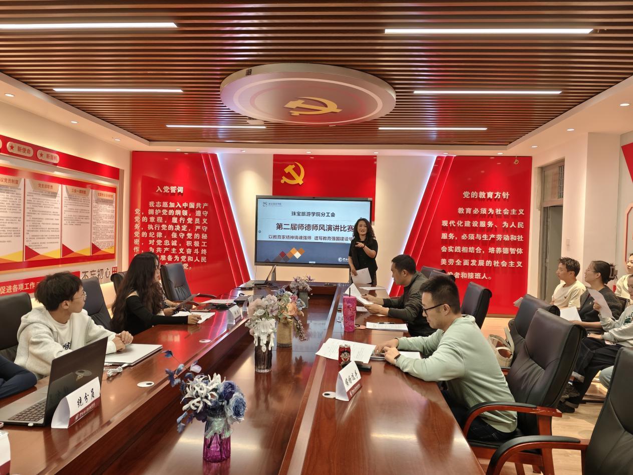 10月10日,新葡8883官网AMG官网党委分工会在勘A303成功举办第二届师德师风演讲比赛。本次比赛以“以教育家精神铸魂强师,谱写教育强国建设华章”为主题,旨在进一步弘扬高尚师德,激励广大教师坚守育人初心。学院共有17名教师踊跃参赛,学院院长陈畅、党委副书记张高参、副院长孟龑、组织员刘迪及辅导员周爱玲共同担任评委。