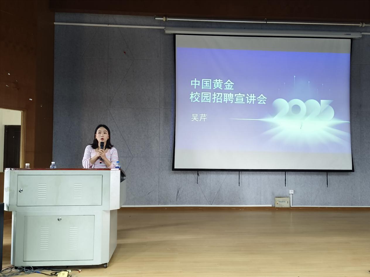 宣讲会上,中国黄金招聘团队通过精心准备的视频与演示文稿,系统介绍了集团作为行业领军企业的雄厚实力、深远影响力及多元化的业务布局,清晰描绘了黄金产业链的全景图。招聘负责人重点解读了2025年度校园招聘计划,详细展示了岗位需求,明确阐述了各岗位发展路径及具有竞争力的薪酬福利体系,传递出中国黄金对青年人才的渴求与重视。