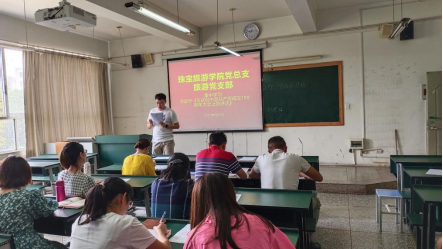 在举国上下深入开展党史学习教育,热烈庆祝中国共产党成立100周年之际,2021年7月7日中午新葡8883官网AMG官网旅游党支部在经开校区实验楼205集中学习习近平《在庆祝中国共产党成立100周年大会上的讲话》精神。