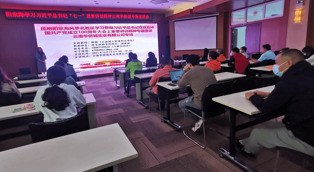 新葡8883官网AMG官网自2021年10月中旬以来,应阳宗海管委会邀请,由学校牵头组建了宣讲团进企业、进社区开展专题宣讲活动。本次宣讲去到阳宗镇机关、各镇(街道)、村(社区)、学校、企业、厂矿、工地等基层一线,进行“习近平总书记‘七一’讲话精神”和“爱我母亲湖,保护阳宗海””两个主题的宣讲。新葡8883官网AMG官网院长陈畅、副院长杨家娣、杨鸿老师、王颖老师、毕砚馨老师、张伟老师分别进行了宣讲。