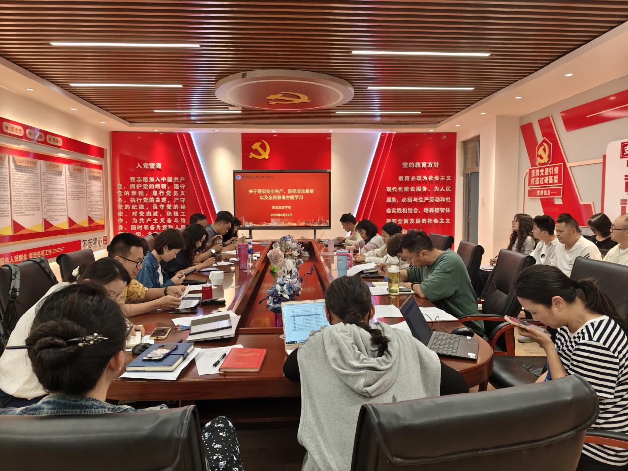 党委书记袁佳在总结讲话中强调,安全生产、防范非法集资和全民禁毒是关乎学院稳定发展、师生切身利益和社会和谐稳定的重要工作。全院上下必须提高政治站位,深刻认识其极端重要性。全体教职工要自觉成为安全稳定的维护者、防范风险的宣传者和遵纪守法的践行者,以高度的责任感和扎实的行动,共同构筑学院高质量发展的坚实安全屏障。临近暑假,他提醒全体教职工在暑假期间务必高度重视安全工作,增强安全防范意识,筑牢安全防线。围绕实习学生的安全管理问题,实习指导老师及辅导员要将学生安全放在首位,提高安全责任意识,加强与实习学生的沟通联系,及时掌握学生实习动态,全方位保障学生实习期间的人身安全与合法权益,确保实习工作平稳开展。