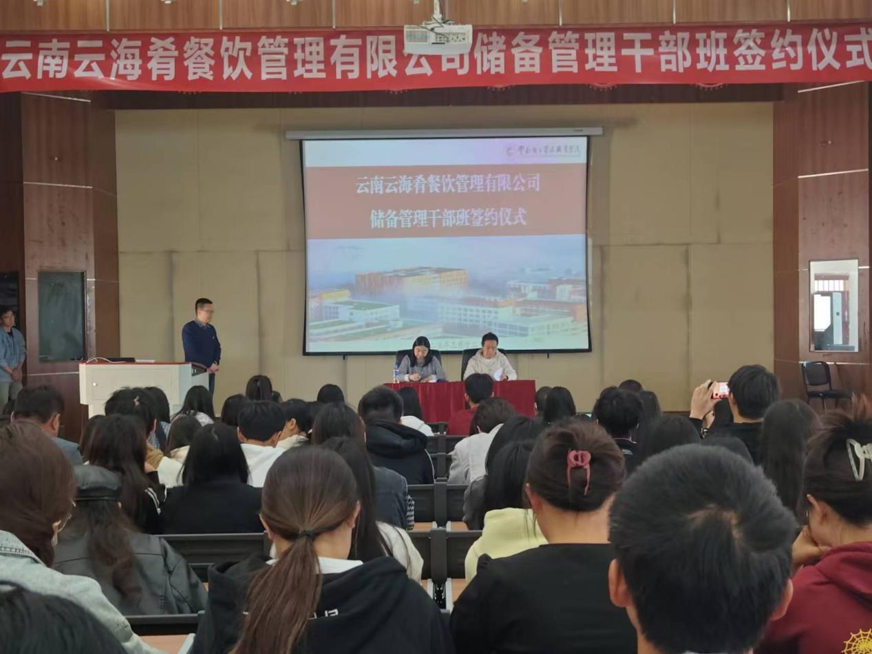 3月12日,新葡8883官网AMG官网与云海肴餐饮管理有限公司在光荣讲堂正式签署校企合作协议,双方将联合开设"储备管理干部订单班",通过"课程共建、师资共培、人才共育"三位一体模式,打造餐饮行业管理人才培养新范式。学院党委书记袁佳、副院长孟龑,云海肴人力资源总监徐程程及旅游管理专业师生代表出席签约仪式。