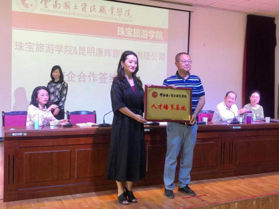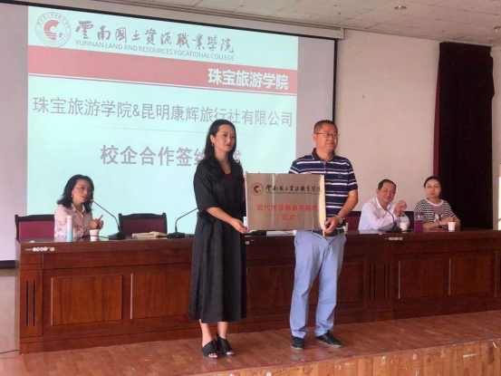会上,陈畅院长与昆明康辉旅行社有限公司曾总就此次合作协议相关具体内容进行细节上的商讨。对合作形式和内容、乙方责任和义务做了详细说明。接着,进行现代学徒制教学基地(试点)合作协议签订及人才培养基地授牌仪式。最后,有幸邀请到新葡8883官网AMG官网原老院长杨叶昆老师来给师生进行研学旅游、红色旅游等专题知识培训,受到师生的热烈欢迎和一致好评。