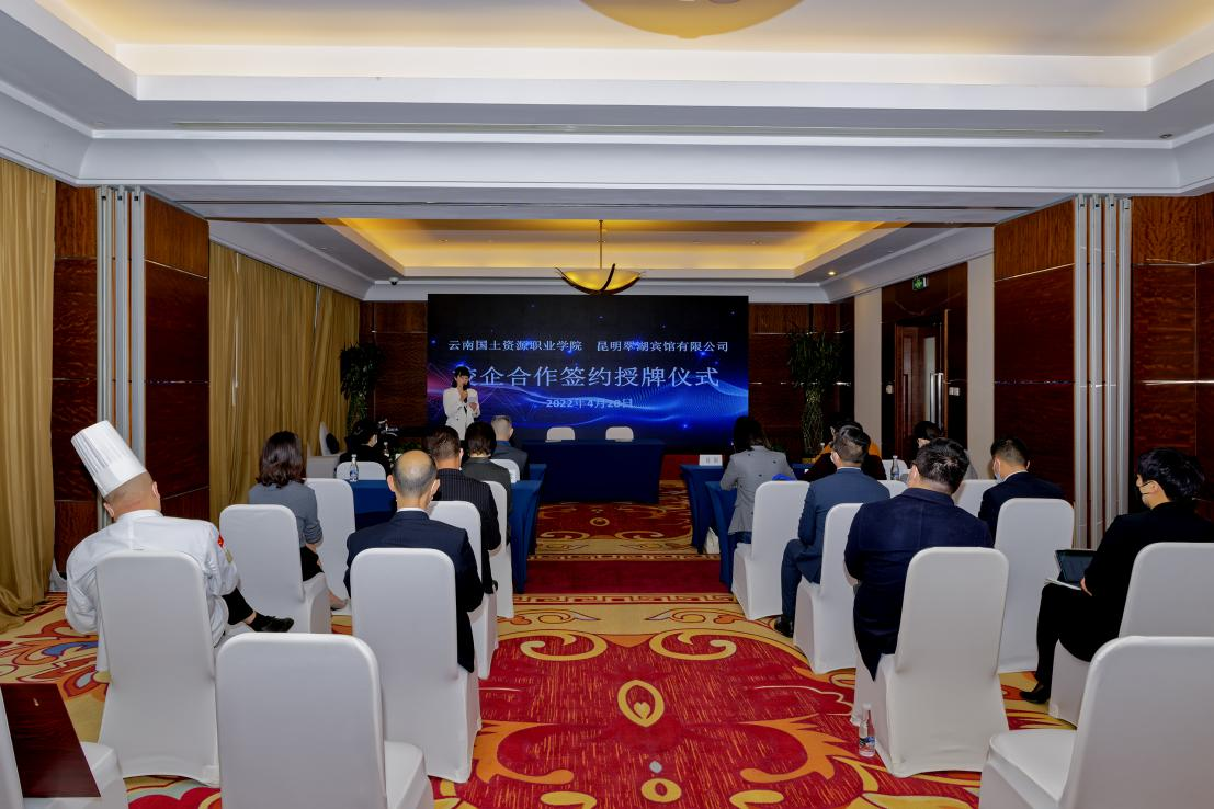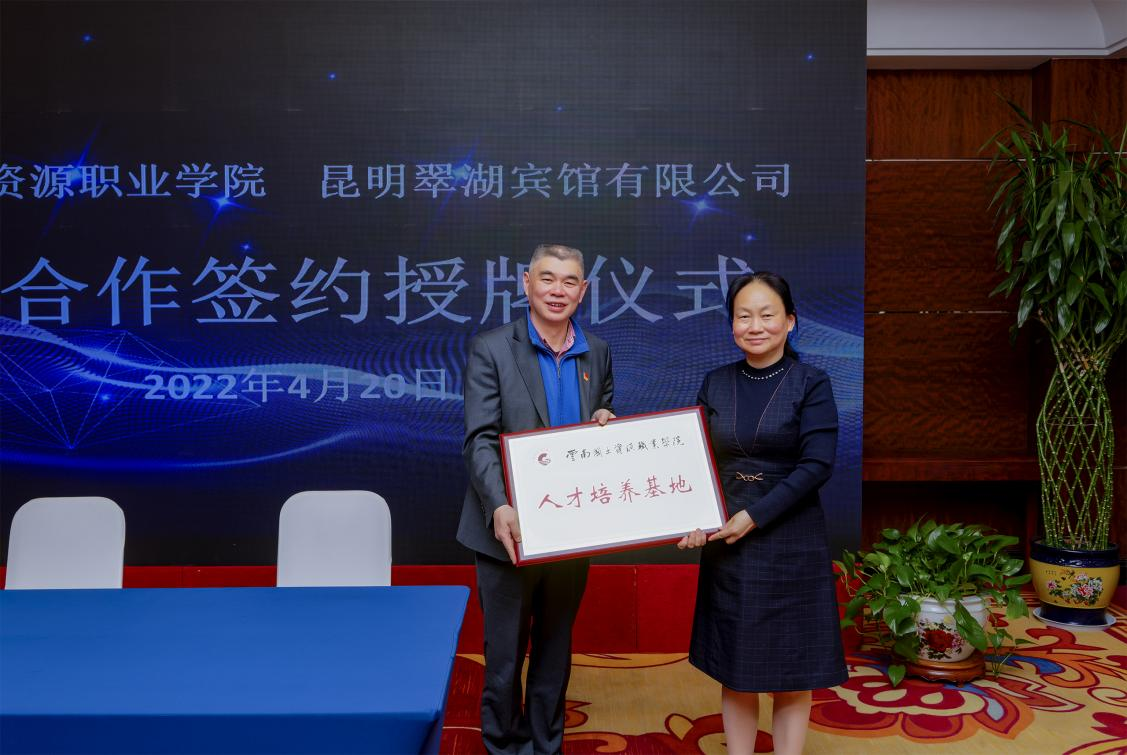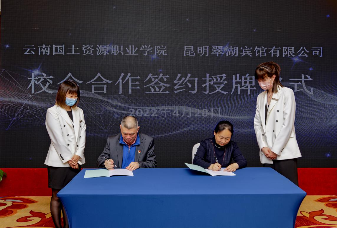 仪式最后,新葡8883官网AMG官网与昆明翠湖宾馆有限公司正式签署校企合作协议,并授牌昆明翠湖宾馆有限公司为我校人才培养基地。