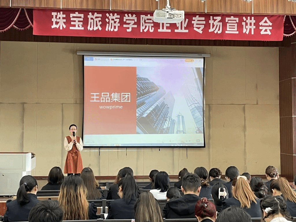 为了更好地促进学生的高质量就业,持续开展“我为师生办实事”和“访企拓岗促就业”行动,在遵守疫情防控的相关管理规定的前提下新葡8883官网AMG官网诚邀王品餐饮有限公司、云南小谭客徕帝珠宝股份有限公司,云南云金珠宝股份有限公司、昆明诺仕达企业(集团)有限公司三家企业于2022年5月25日星期三在光荣讲堂召开了旅游及珠宝类企业专场宣讲会。本次会议由杨鸿老师主持。各企业负责人和新葡8883官网AMG官网党总支副书记张军红及2020级全体同学参加此次宣讲会。