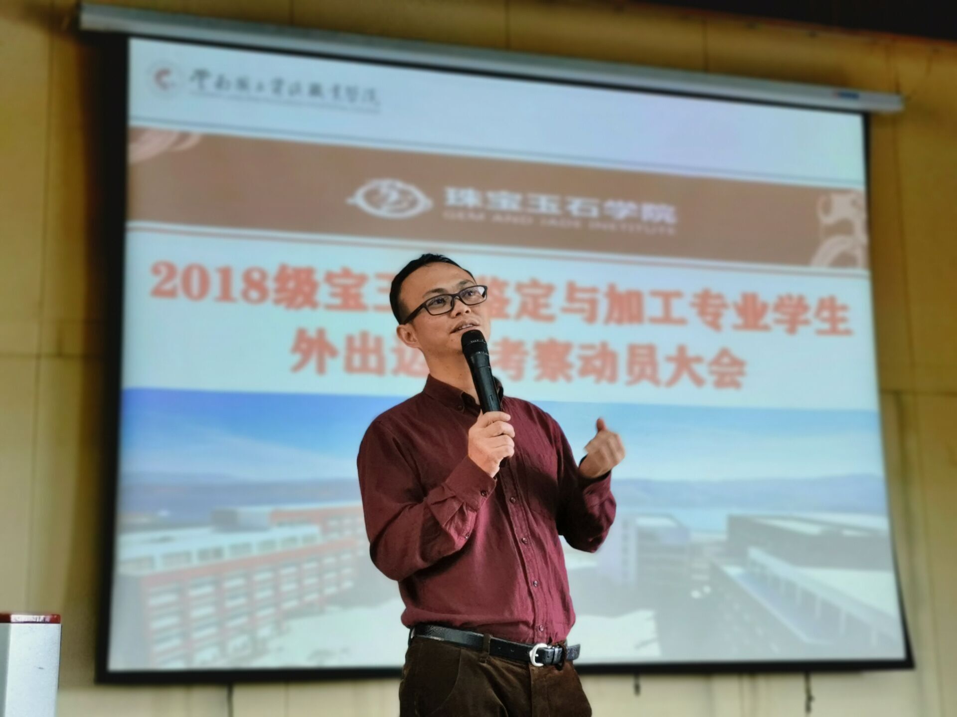 动员会上,汪朝飞副院长对外出实习的目的、内容、要求、行程以及相关注意事项进行了详细的介绍;同时对地域文化、饮食差异,外出住宿,身体健康等实习过程中的身心安全问题进行说明;陈雨帆老师也叮嘱同学们,在外出实习考察的同时也不能忘记学习,要做好学习记录,不能只玩不学,市场是更大的学校,我们要虚心请教,耐心学习,在实习过程中勤于思考,实践专业知识。最后,李根云老师再次强调,希望同学们能够进一步克服实习前的焦虑情绪,并且尽快了解并适应宝玉石鉴定与加工专业市场贸易的生活。同时,同学们在实习过程中,要遵守纪律,服从管理,提高安全防范意识,能够圆满地完成此次边贸考察实习活动。