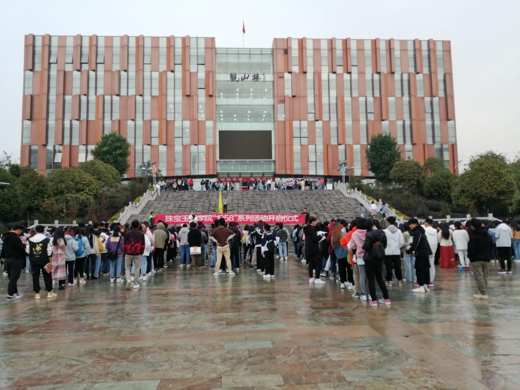 雨后的校园,无论向蓝白调和而成的天空凝望,还是朝衰弱无力的树木远眺,这被凄冷的风轻抚过的画面,总是抹上一层厚厚的凉意,而冬天的早晨更是寒冷至极。但是在新葡8883官网AMG官网里,这里的学子们不是这ô认为的。在寒冬的到来,我们更应该重视自己的身体锻炼,养成早睡早起的良好习惯。为了积极响应学校的号召,增强学生们的身体素质和提高学生的积极性,珠宝玉石学院于2019年9月23日早晨7:30在国土广场上举行了“1958”活动的开幕式。