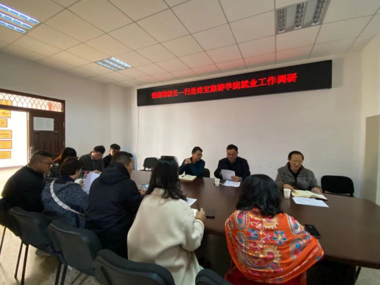 首先张校长就此行目的进行发言,他提出目前就业形势严峻,各二级学院要以服务学生为宗旨,切实做好就业工作。随后学院就目前就业工作进行了汇报,为促进学生就业,新葡官网采取了线上线下双结合,定期向18级学生推荐工作机会,特别是建档立卡户学生实行就业一对一指导。全院目前导游和旅游管理就业率还不够理想,但后面会通过举行专场招聘会,积极洽接企业拓宽新渠道等多种方式解决。最后校级领导分别针对学院就业问题进行了详细指导。就业处处长董云提出以后就业工作要压实工作责任,推快就业进程,不光要找问题还要解决问题。建议学院用好用足学校招聘政策,用好奖励杠杆,实行奖惩机制。王副校长建议学院一定要做好顶层设计,做好内部组织工作,结合省内旅游优势积极开拓就业市场。做好学生就业思想工作,落实落细就业工作。最后张校长进行总结发言,他提出就业工作对学生对学校都是一项大事,院级一定要高度重视,精心部署,做好具体就业措施,研究思考就业安排。就业指导老师要走出校内,多与企业进行沟通,帮助学生拓宽就业渠道,多与学生联系关爱学生,用尽全力做好毕业生就业服务工作。