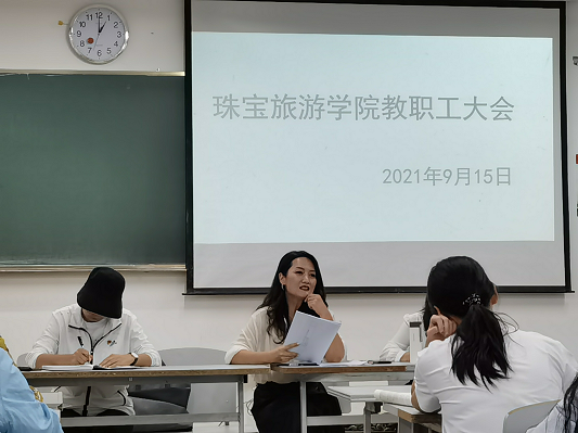 2021年9月15日星期三中午12:40分新葡8883官网AMG官网全体教师在笃行楼201教室召开了教职工大会。本次大会共有三项流程。