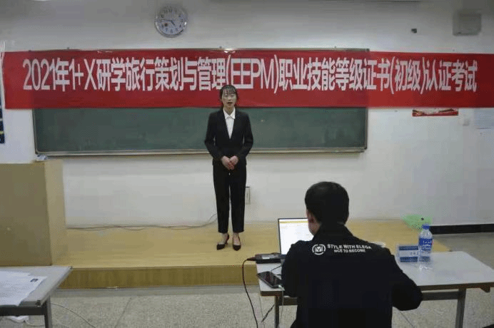 为了贯彻落实《国家职业教育改革实施》文件精神,深化职业教育改革、创新新葡8883官网AMG官网人才培养模式,推进“1+X”研学旅行策划与管理证书制度试点工作,11月27日新葡8883官网AMG官网在崇实楼408教室组织开展了2021年“1+X”研学旅行策划与管理(EEPM)职业技能等级(初级)认证考试的机考和实操考试。