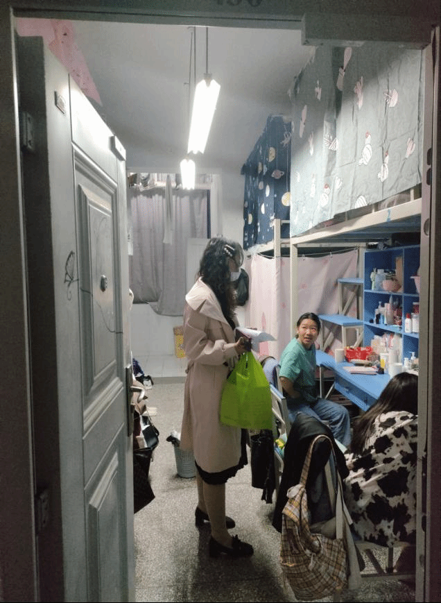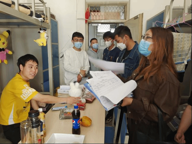 次日上午,辅导员们带领各班负责人准时来到宿舍楼前开展拉网式排查。按照张军红副书记的要求,辅导员们一间一间逐一走访,对每一间宿舍的安全隐患和卫生情况进行检查。并向同学们进行了疫情防控相关教育,摸清同学们的具体情况,鼓励大家一起做好疫情防控保卫战。同学们表示会严格遵守疫情防控要求,保持寝室干净整洁并保持通风,做好自身防疫工作,同学校一起打赢这场“战役”。