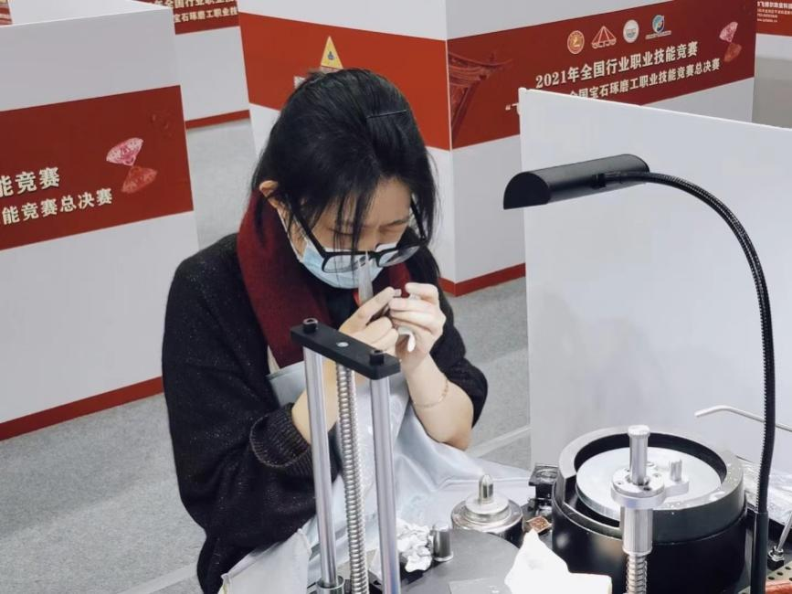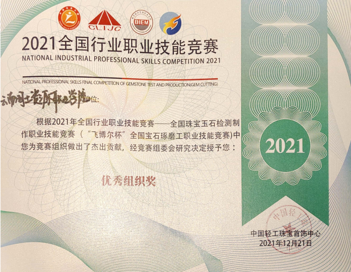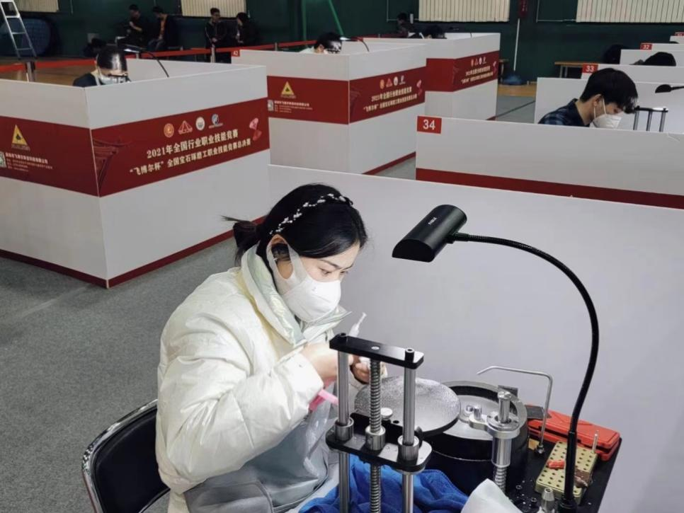 随后纳秀溪老师和罗帮莲代表新葡8883官网AMG官网,参加了2021年12月21日在北京经济管理职业学院举行的“2021年全国行业职业技能竞赛“飞博尔杯”宝石琢磨工职业技能竞赛总决赛。该比赛由中国轻工业联合会、中国轻工珠宝首饰中心、中国就业培训技术指导中心及中国财贸轻纺烟草工会全国委员会主办,由晋江海峡职业培训中心、北京经济管理职业学院承办,此次总决赛分为职工组和学生组,分别设有理论测试和实际操作技能两个竞赛环节,要求参赛选手在规定时间内完成两颗宝石的切磨及理论答题。重点考察参赛选手的知识能力和技艺水平。
