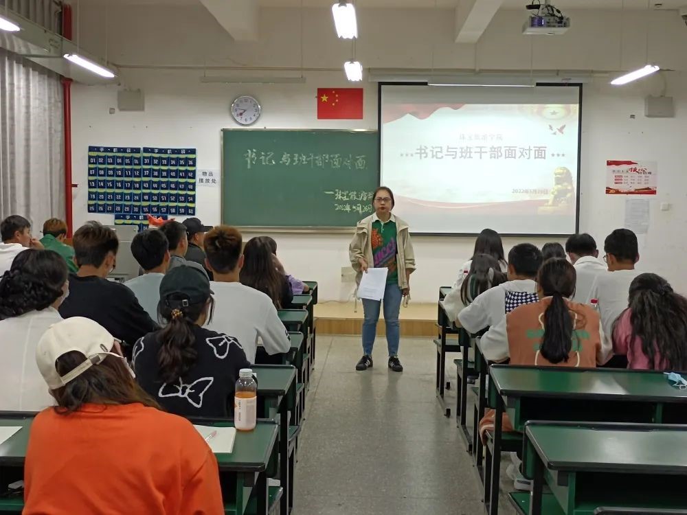 最后张颖书记结合自身学生干部经历和工作实践,讲解了大学班级组织架构,班委会、团支部工作职能。她强调,作为班干部应该感到荣幸,珍惜机会,做好学生干部工作,在班级工作的平台上磨炼自己,努力提升自我素质、树立团队意识、增强沟通能力,为将来在社会上发光发热打好基础。她还告诉同学们,班主任、辅导员就是学生的贴心人,学习、生活、工作中遇到困难或特殊情况要及时上报班主任、辅导员。班干部要充分发挥桥梁和纽带作用,为学生发展、学校建设贡献青春力量。