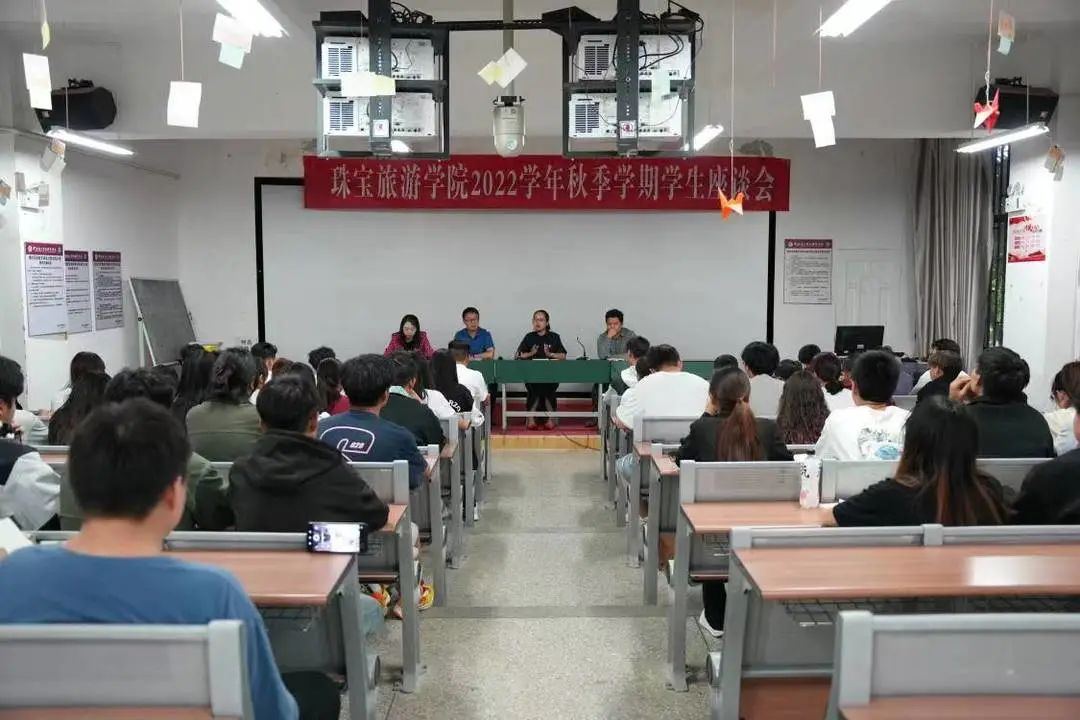 座谈会气氛轻松和谐,同学们畅所欲言,就第二课堂积分、顶岗实习、专升本、宿舍用水、食堂就餐、近期开展的四大奖项评选等方面提出了问题。老师们认真听取了同学们的发言做了详细记录,并对同学们提出的问题做了耐心细致的解答。张颖书记表示大家所提出的问题都会及时跟进处置,确保件件有落实、事事有回音,努力为全体宝旅学子营造快乐学习,幸福生活的良好环境。