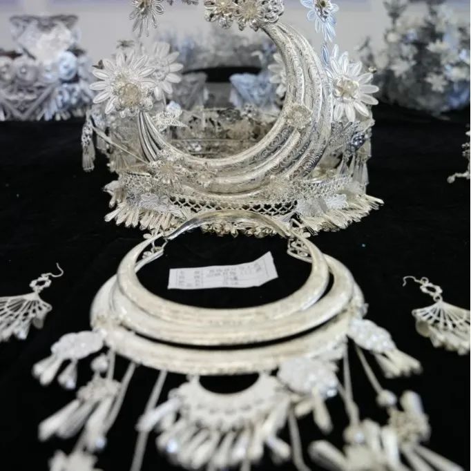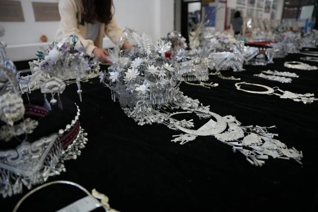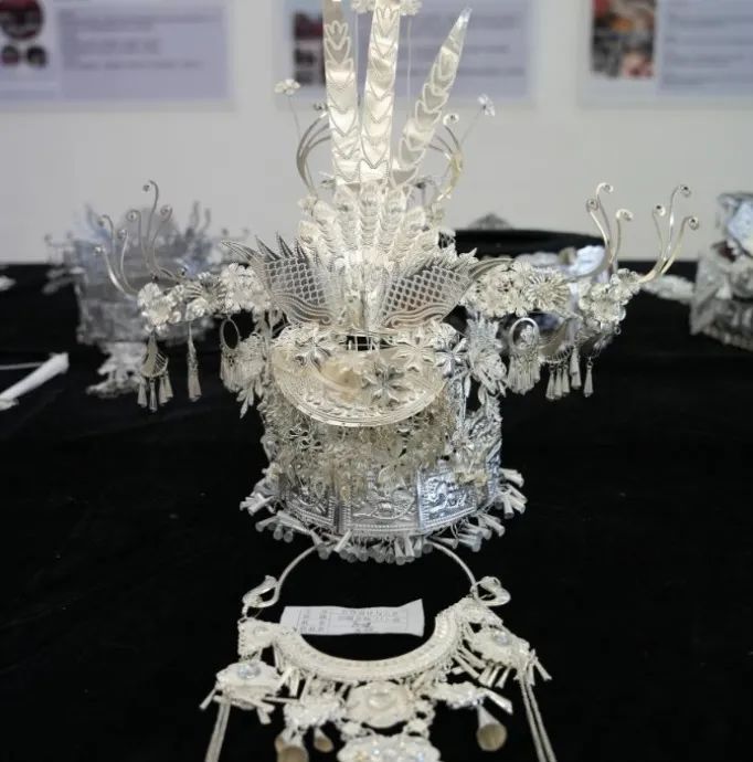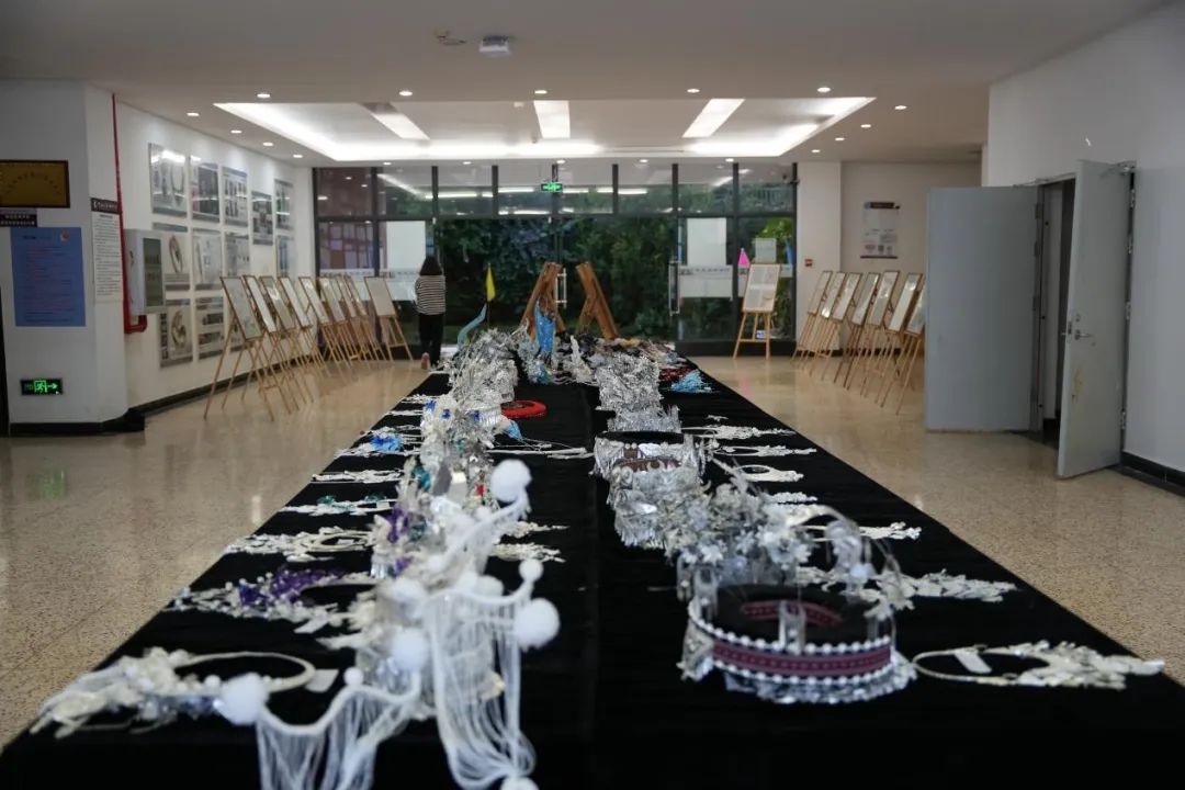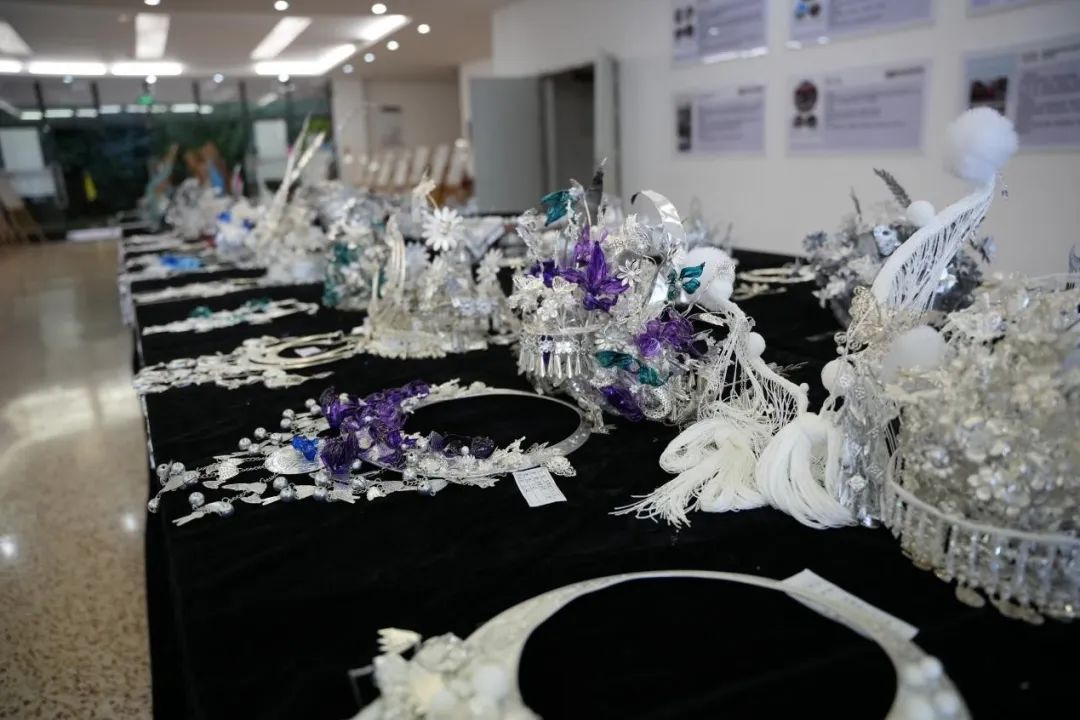 展览中的每件作品都散发着属于自己的闪耀光芒。充满民族特色的银冠,奇幻绚丽的发饰,精雕细琢的玉石,富有想象力的设计手稿。一顶顶银冠,一张张手稿尽显同学们对设计的热爱。展品中的各项作品具有民族风元素,色彩斑斓的款式展示了民族之美。民族风与现代设计的融合恰到好处,个性且又时髦,简约的搭配,将时尚与民族气息很好地融合在了一起。