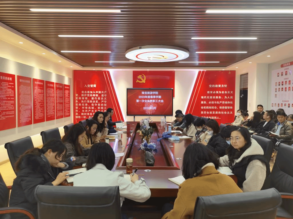 2023年3月2日星期四上午十点新葡8883官网AMG官网在党建活动室召开2023年度春季学期第一次全体教职工大会。