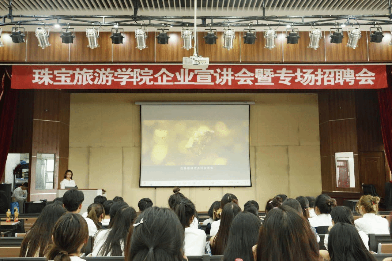 宣讲会伊始,深圳德诚、云金珠宝、景洪周大生珠宝依次通过放映宣传片和PPT演示的方式,向同学们介绍企业规模、企业业务、企业文化、薪资待遇、员工晋升机制、人才需求及培养模式等,多方面向同学们详细介绍了公司情况。在宣讲会后,深圳德诚、云金珠宝、景洪周大生珠宝负责人给同学们集体解答疑惑。