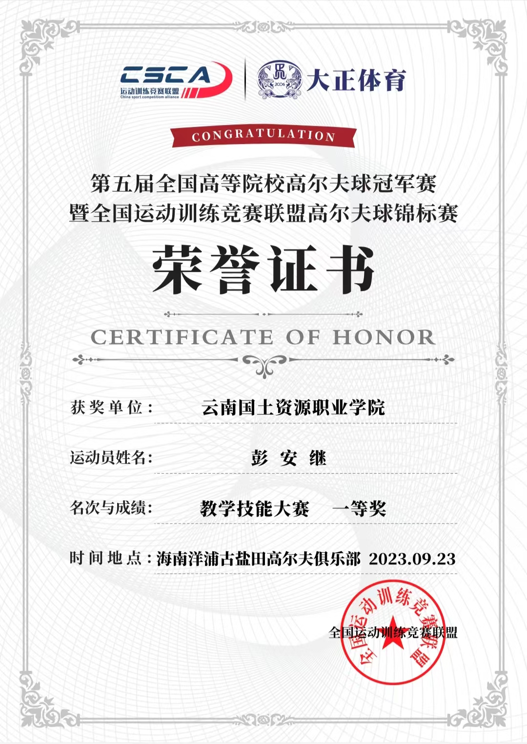 为进一步提升高等院校师资培育水平和人才培养质量。近日,由国家体育总局科教司倡导,全国运动训练竞赛联盟举办的第五届全国高等院校高尔夫球冠军赛在海南省儋州市打响。新葡8883官网AMG官网彭安继老师代表学校参加了比赛。