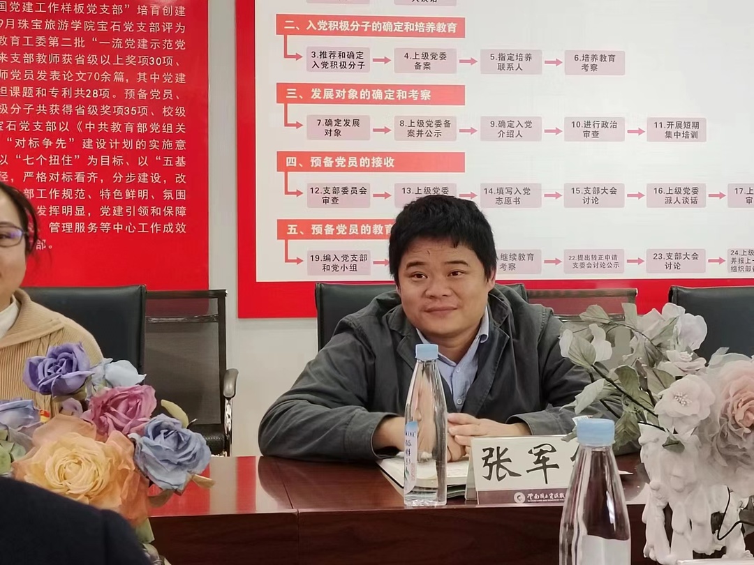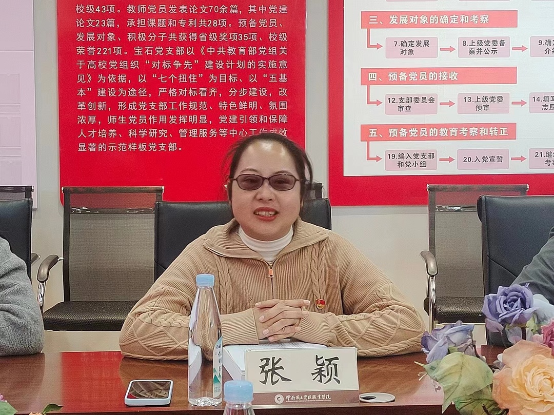 钟振华书记表示,楚雄师范学院物电学院教工党支部于2021年申报全国样板党支部,于今年6月即将验收,希望给予指导和帮助。党委副书记张军红、专职组织员刘迪、宝石党支部组织委员刘婉分别就各自负责区域进行详细介绍和说明,以此清晰、全面地展示新葡官网创建全国样板党支部的过程。