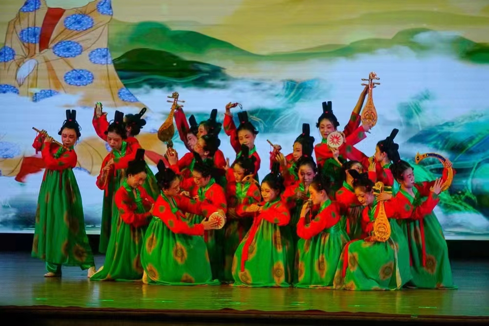 “唐宫夜宴”其灵感来源于唐朝著名的宫廷舞蹈《唐宫夜宴图》。舞蹈的编排独具匠心,从服装设计到音乐选择,再到舞美灯光,都充满了浓郁的历史气息。学生们精心挑选了具有代表性的唐朝服饰,配合悠扬的音乐,将舞蹈的节奏和韵律表现得淋漓尽致。在表演过程中,学生们精湛的舞技和默契地配合赢得了观众们的一致好评。他们以优美的身姿、优雅的步伐和动人的表情,将唐朝宫廷宴会的盛景展现得淋漓尽致。在舞蹈中,学生们巧妙地运用了各种舞蹈技巧,将唐朝宫廷宴会的场景生动地呈现出来,仿佛将观众带回了那个充满诗意的盛世。