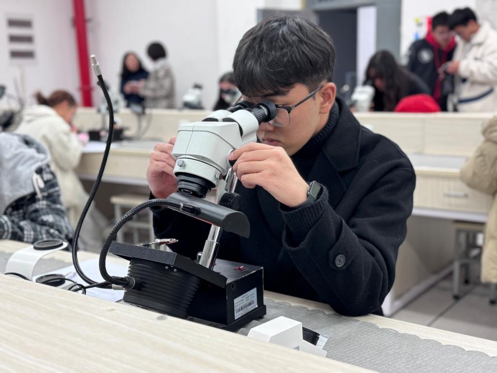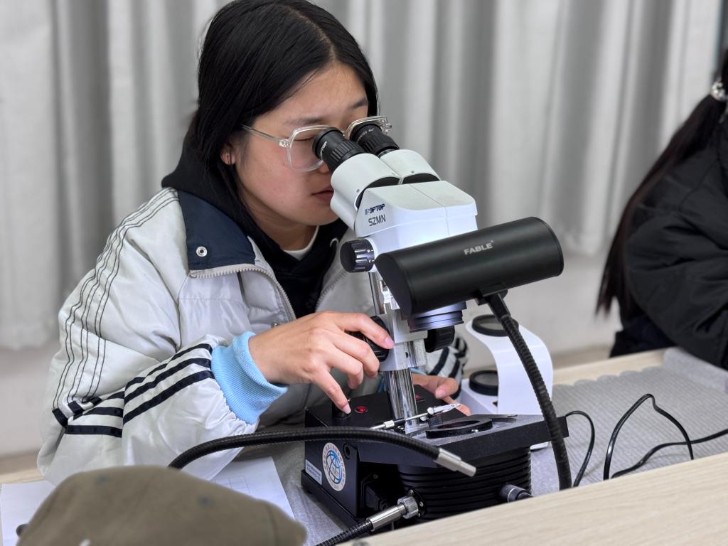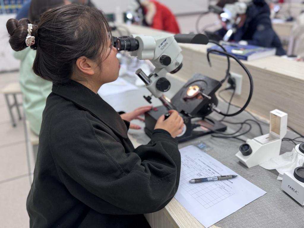 为贯彻落实以赛促融、促教、促改、促学、促建,11月27日下午新葡8883官网AMG官网在勘物楼举行珠宝玉石鉴定赛项校赛决赛,此次大赛由新葡8883官网AMG官网副院长孟龑、陈雨帆,宝玉石鉴定教研室主任杨莉、专业带头人蒋琪四位老师全程进行监督检查,23级新葡8883官网AMG官网宝玉石鉴定专业的21名学生进行比赛。