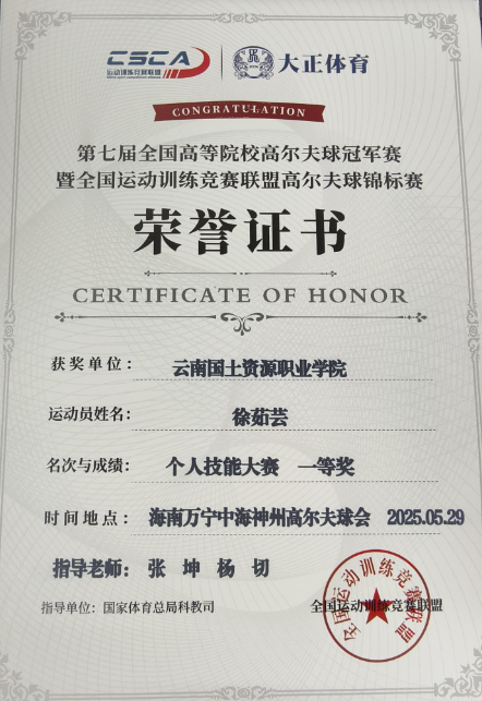5月23日-5月30日在海南三亚神州半岛落幕的第七届全国高等院校高尔夫球冠军赛上,我校新葡8883官网AMG官网休闲服务与管理专业高尔夫球队创造参赛佳绩。