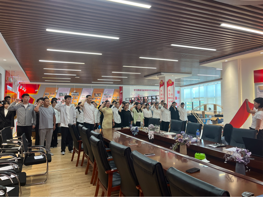 新党员代表孙安琪作表态发言,感谢组织培养,承诺将以更高标准要求自己,发挥先锋模范作用。随后,在张高参书记领誓下,新发展的预备党员及转正党员一同面向党旗庄严宣誓。会上还举行了为预备党员佩戴党员徽章和赠送政治生日贺卡仪式。