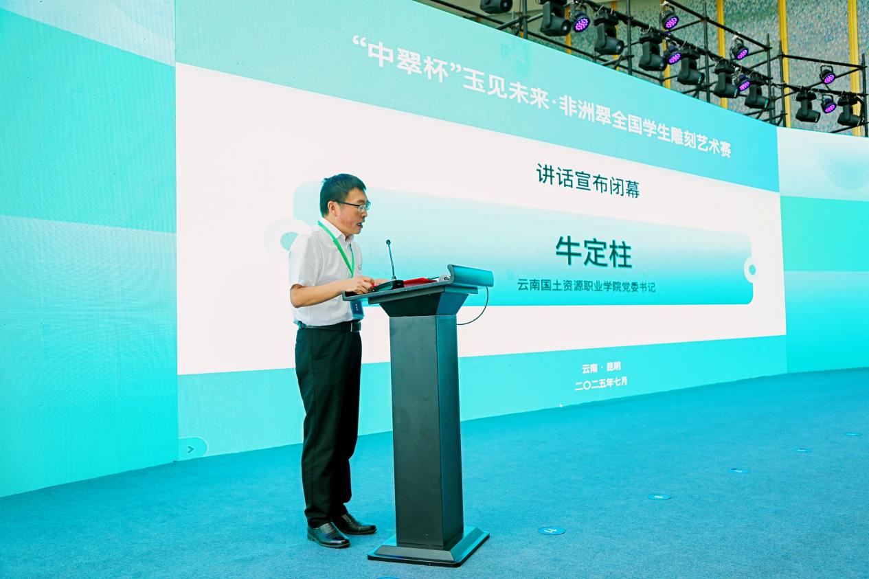 最后,新葡8883官网AMG官网党委书记牛定柱致闭幕辞。他代表承办方对莅临现场的各位领导嘉宾表示热烈欢迎,向给予大赛大力支持的自然资源部人力资源开发中心、全体工作人员及广大师生表示衷心感谢。牛书记表示,相信在社会各界的持续支持下,“玉见未来”雕刻艺术大赛定能越办越好,逐步成长为全国职业教育领域的标志性品牌赛事。