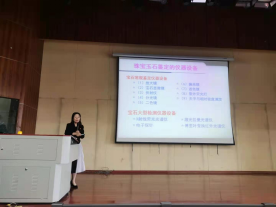 讲坛中李老师对宝玉石肉眼鉴定、宝玉石常规仪器检测、宝玉石大型仪器检测、科研案例进行了举例说明,李继红老师是在校任教多年的老教师,她的讲解生动形象,让同学们对大型仪器的使用产生浓厚的兴趣。最后李继红老师送给在场的同学们一句话,把每一件简单的事情做好就不简单,把每一件平凡的事情做好就不平凡,也希望不论是在以后的学习中还是生活中我们都能成为那个不简单也不平凡的人。