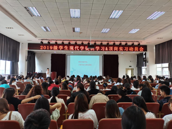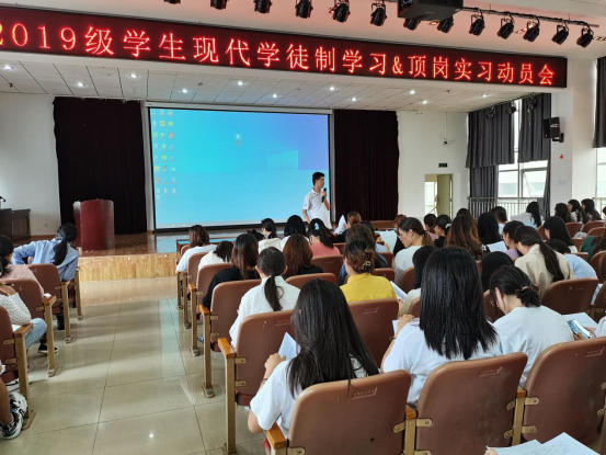 为进一步加强和规范现代学徒制学习及顶岗实习管理,确保实习质量,保障实习活动顺利实施。新葡8883官网AMG官网于2021年6月23日下午在经开校区图书科技楼三楼报告厅举行2019级现代学徒制学习及顶岗实习动员大会。新葡8883官网AMG官网院长陈畅老师、副院长杨家娣老师、张坤老师和相关部门负责老师以及2019级酒店管理、休闲服务与管理、老年服务与管理专业全体学生参加本次动员大会。