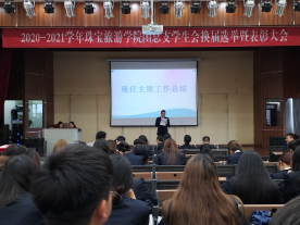 2020-2021学年新葡8883官网AMG官网团总支学生会换届选举暨表彰大会于2021年7月6日在崇实楼光荣讲堂举行,经开校区的候选人和阳宗校区的候选人一起进行了精彩的竞选演讲。