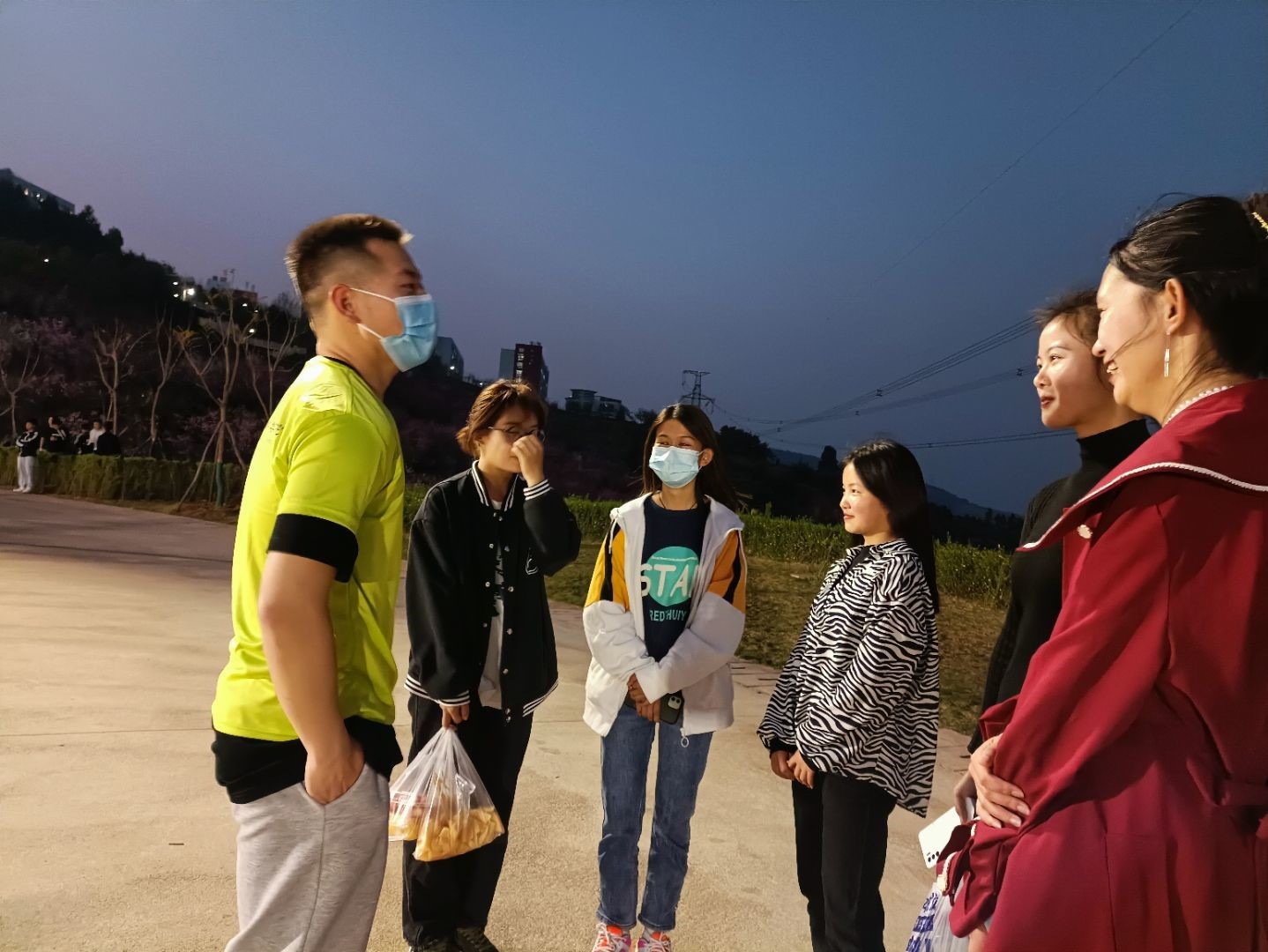 以实际行动践行初心使命,为自己的学院做贡献。志愿者们不畏艰辛,到观众台上指导同学们保持安全距离,提醒到场加油的同学佩戴好口罩并在出入口测量同学体温是否正常。同时当学院同学比完赛,志愿者们积极主动去搀扶比赛完的同学,给她们递水,送食物,询问身体是否受伤等。