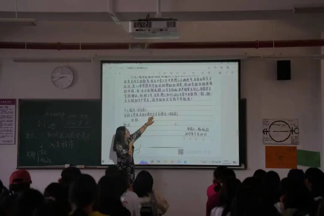 刘迪老师细心为同学们讲解如何写好入党申请书