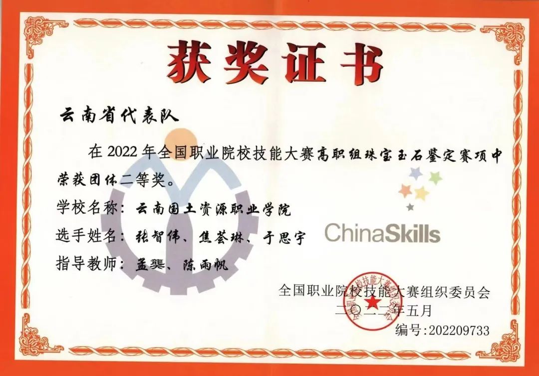 同时,新葡官网依托“宝石类职业技能竞赛培训平台”双高项目,项目组团队教师对云南省二队(昆明冶金高等专科学校)提供了培训帮助服务,同时也取得较好成绩!