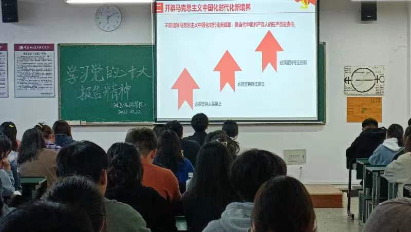为加深学生对党的二十大精神的理解,引领学生深入感悟中国共产党的初心使命和伟大成就,坚定理想信念,矢志爱国报国。新葡8883官网AMG官网团总支于2022年10月22日在笃行楼701开展主题团日活动。活动由新葡8883官网AMG官网团支部副书记么晨彬担任会议主讲人。