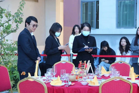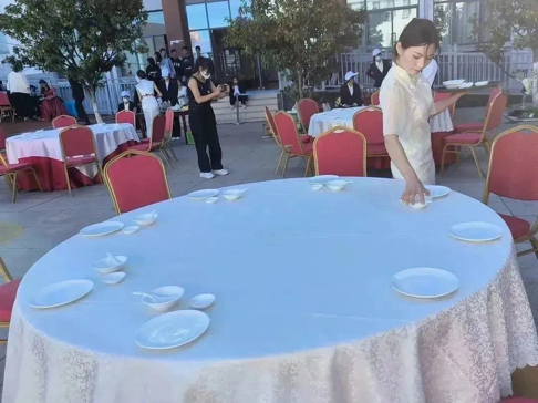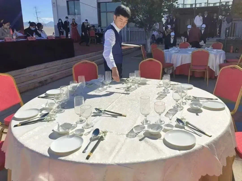 经过周密部署、精心筹备,比赛正式开始,此次比赛以实操技能为主,包括仪容仪表、宴会摆台、餐巾折花、主题创意设计、菜单设计、主题创意说明、餐前服务、点菜服务、酒水服务、餐后服务多项内容。每一位选手在规定时间内完成仪容仪表展示、8人台宴会设计摆台技能服务。参赛选手准备充分,通过现场操作展现了各自娴熟的岗位操作技能、规范的操作程序。