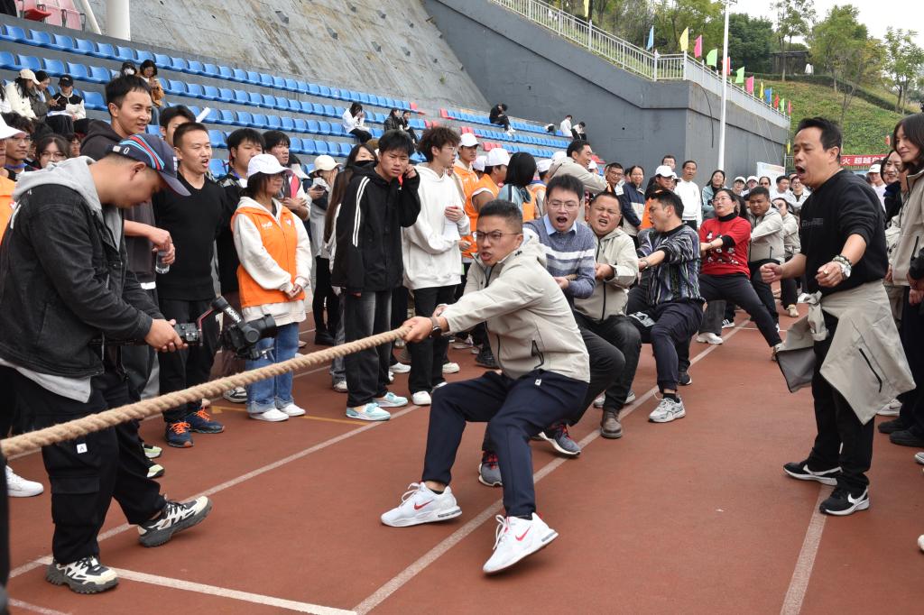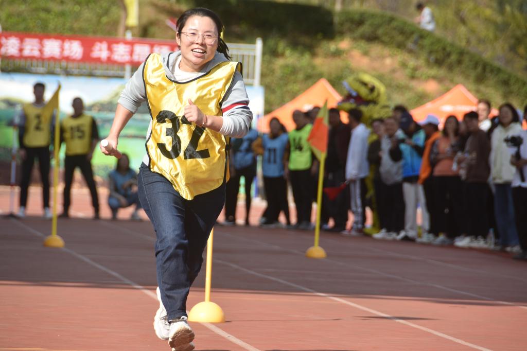 老师们也毫不逊色。在趣味运动项目中,平日里站在讲台上严肃认真的他们,此刻展现出了童真可爱的一面。有的老师参加跳绳比赛,轻盈的跳跃仿佛找回了童年的欢乐时光;有的参与接力跑项目,专注的神情和稳健的步伐让人忍俊不禁又心生敬佩。他们用自己的行动向同学们传递着运动的快乐和积极生活的态度,即使偶尔失误,也会相视而笑,那份豁达与乐观感染着在场的每一个人。