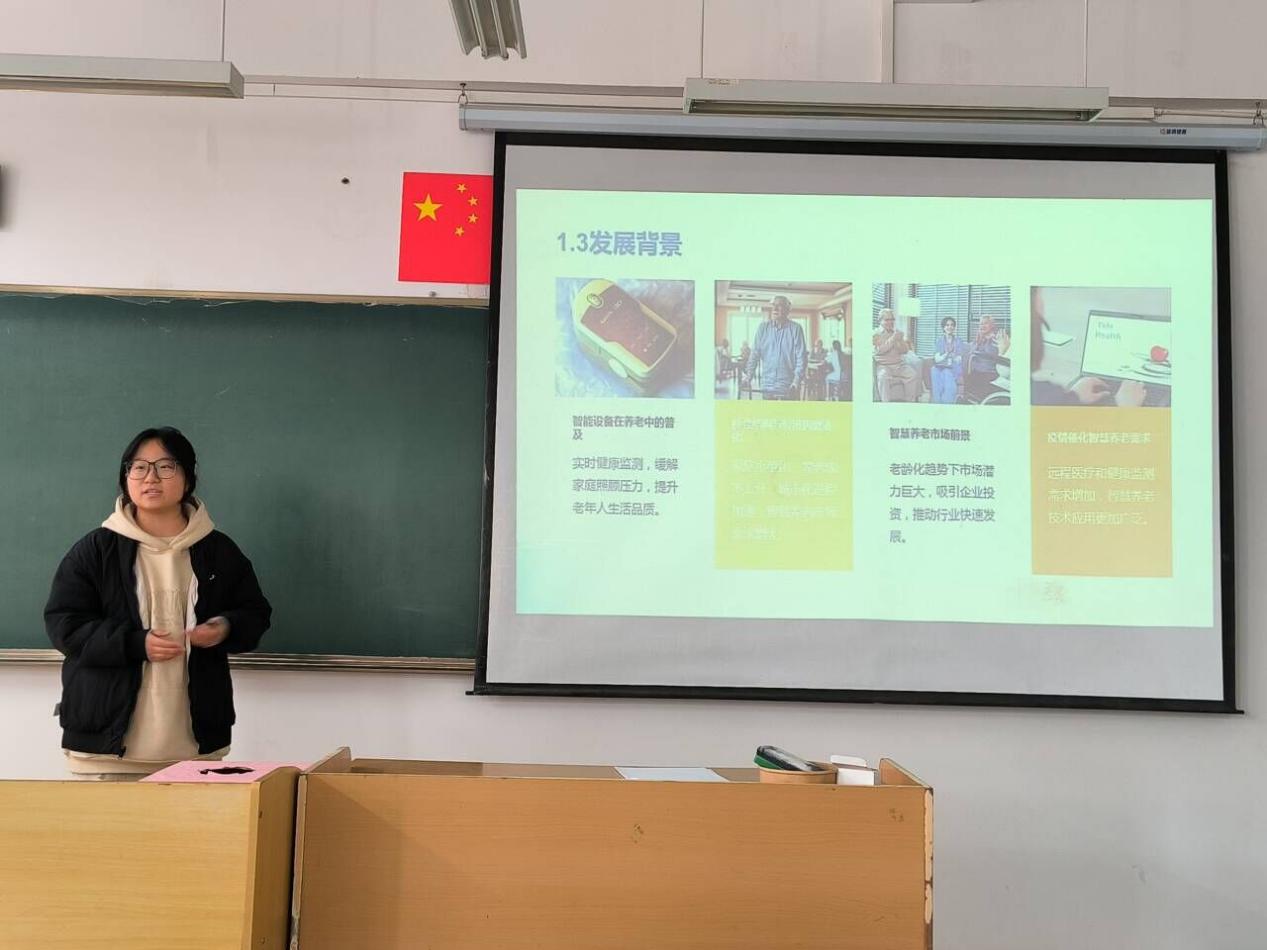 本届比赛自2024年1月启动以来,获得了同学们的广泛关注和积极响应,经学院严格把关、认真评选、分类遴选,最终共有7个团队项目进入院赛决赛。竞赛现场,各团队通过精彩展示与答辩,充分呈现研究成果。答辩采用5+3模式汇报,5分钟讲解,3分钟评委提问,决赛全程严谨有序,参赛选手们从项目背景、社会价值、实践过程等方面对项目内容进行综合性阐述,他们精神饱满、自信从容,全方位展示其创业计划,带来了一场精彩绝伦的创新盛宴。各组参赛人员答辩结束后,专家评委首先对参赛选手们的创新热情与创造思维给予肯定,分别从项目基础、实践过程、产品创新等方面对各团队建设成果进行了详细点评提问,并给予中肯的优化建议,参赛选手们受益匪浅。