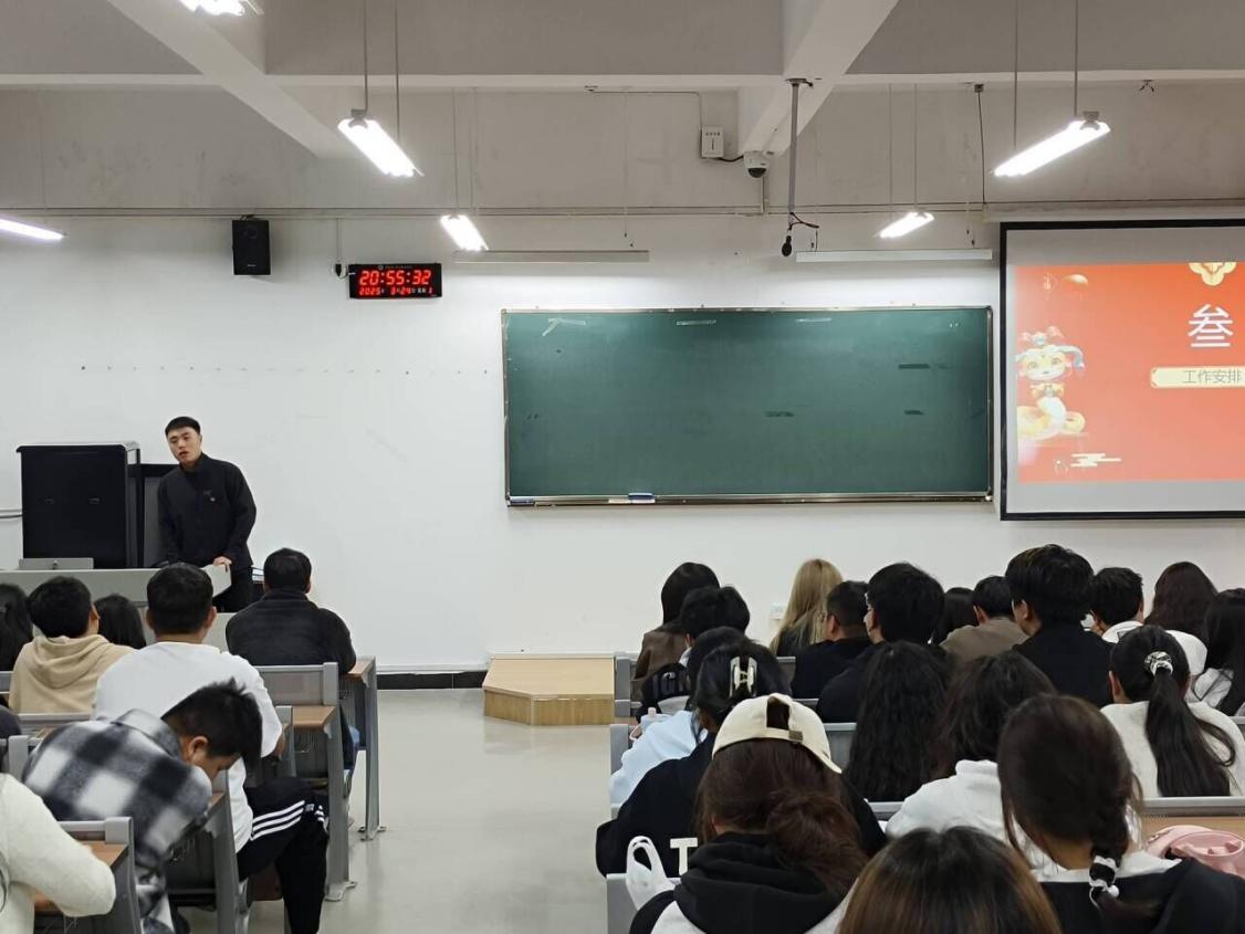 随后,学生会主席陆慧芬对学生会上学期的工作进行了全面总结。她回顾了篮球比赛、运动会志愿服务、校园模特大赛等一系列活动的成果,对全体成员在各项活动中的辛勤付出给予充分肯定,并代表学生会向大家表达了诚挚的感谢。紧接着,学生会副主席雷凯对本学期的工作重点进行了详细安排,明确了各部门的工作任务和目标。