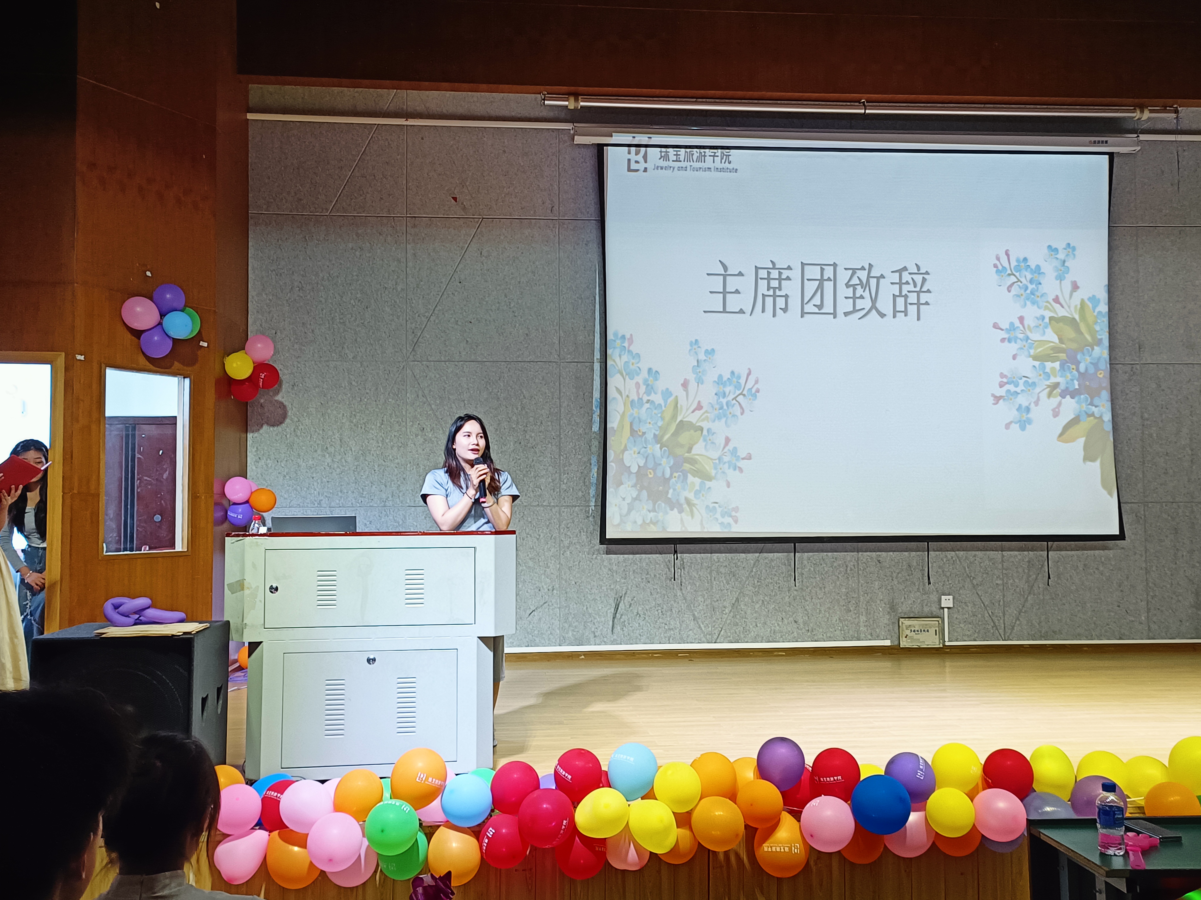 此次欢送会由2024级学生会全体干事精心筹备。活动现场布置温馨,五彩气球点缀四周,洋溢着青春的气息。开场后,主持人热情洋溢地介绍了活动流程与到场嘉宾,为活动揭开了欢快的序幕。