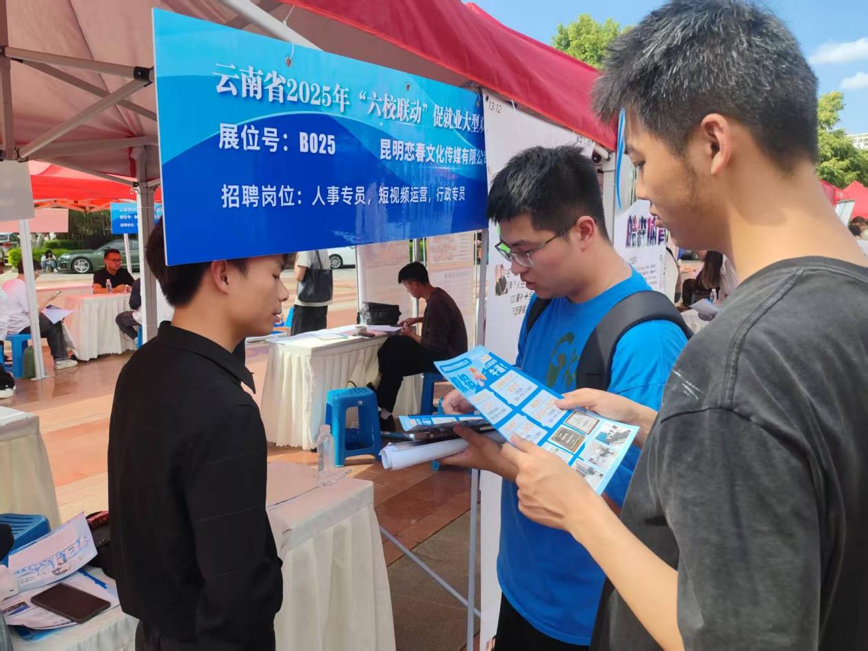 为拓宽毕业生就业渠道,助力学生精准对接优质就业资源。5月20日,由中共云南省委教育工委、云南省教育厅、云南省人力资源和社会保障厅、云南省工商业联合会主办的云南省2025年六校联动促就业春季大型双选会在昆明理工大学呈贡校区图书馆前广场成功举办。新葡8883官网AMG官网组织2023级在校生参与此次双选会,通过校企深度对接为职业发展开拓新机遇。