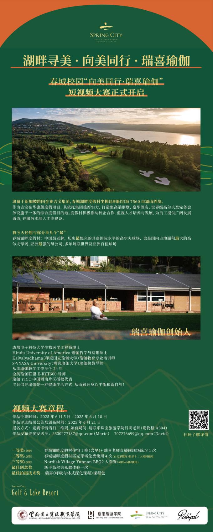 新葡8883官网AMG官网团总支负责人吕明首先发表了热情洋溢的欢迎辞。他强调,本次瑜伽短视频大赛是学院“向美同行,美育育人”第二课堂实践育人特色课程的重要组成部分。赛事不仅旨在比拼技艺,更希望通过当代青年喜闻乐见的形式,引导大家发现美、传播美,践行健康生活方式。昆明春城湖畔度假村市场部负责人Anna在发言中介绍了度假村的基本情况,并表示度假村始终积极推动校企合作,高度重视人才培养与发展,致力于为员工提供广阔的职业发展平台,并欢迎同学们未来选择加入春城湖畔度假村就业发展。瑞喜瑜伽创始人Rishi老师结合现代健康理念,深入阐述了瑜伽的内在价值与力量。最后,刘航麟老师详细介绍了本次短视频大赛的具体规则与参赛要求,鼓励大家踊跃参加比赛。