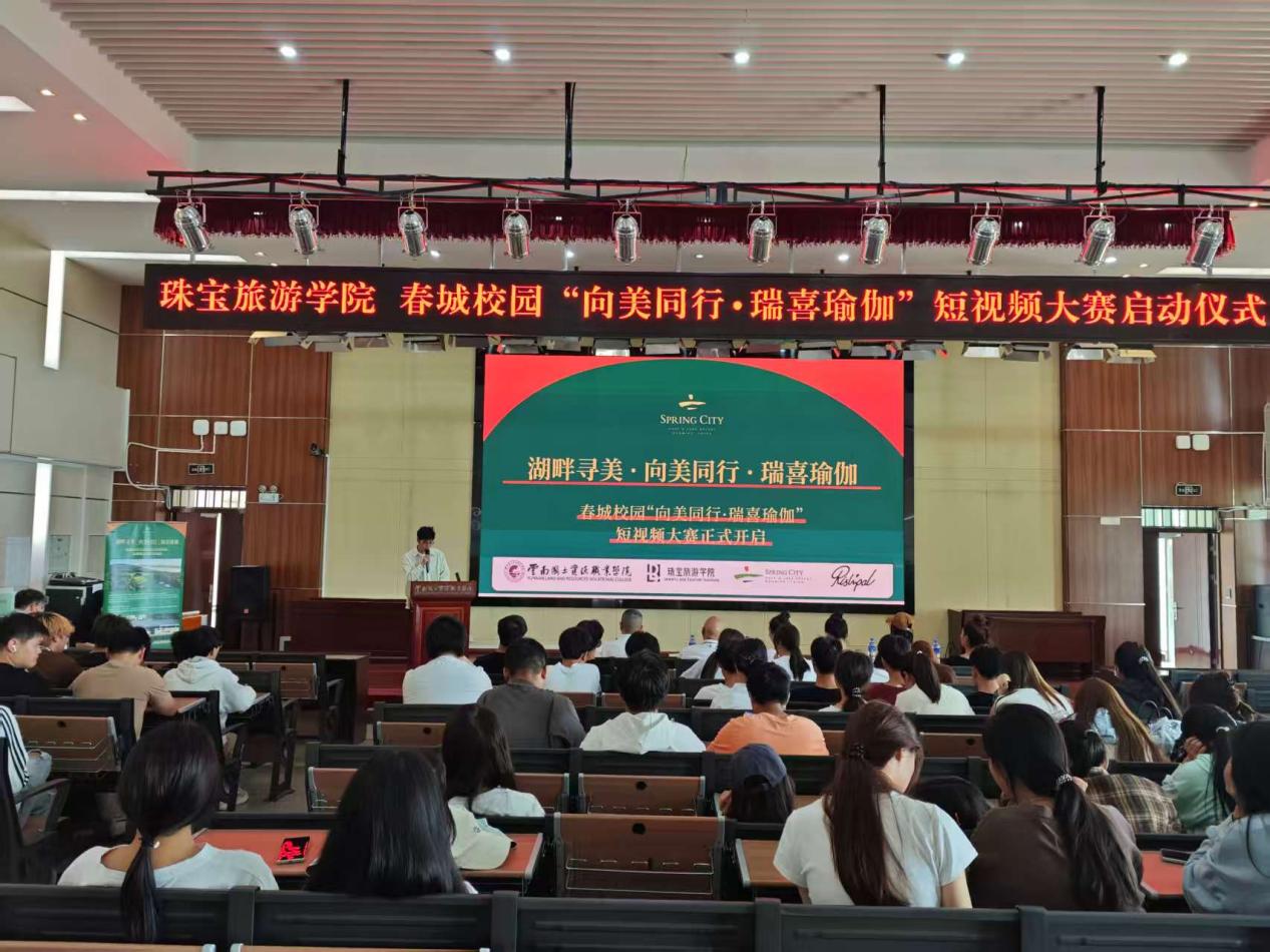 6月17日,新葡8883官网AMG官网在宝鼎讲堂隆重举行了春城校园“向美同行·瑞喜瑜伽”短视频大赛的启动仪式。此次活动由昆明春城湖畔旅游置业发展有限公司主办,新葡8883官网AMG官网新葡8883官网AMG官网承办,成都蓝水湾健身服务有限公司协办。学院团总支负责人吕明,教师孔元元、刘航麟、许丽娟,瑞喜瑜伽创始人Rishi老师及其团队,以及昆明春城湖畔度假村市场部负责人Anna及其团队均出席了本次活动。启动仪式由刘航麟老师主持。