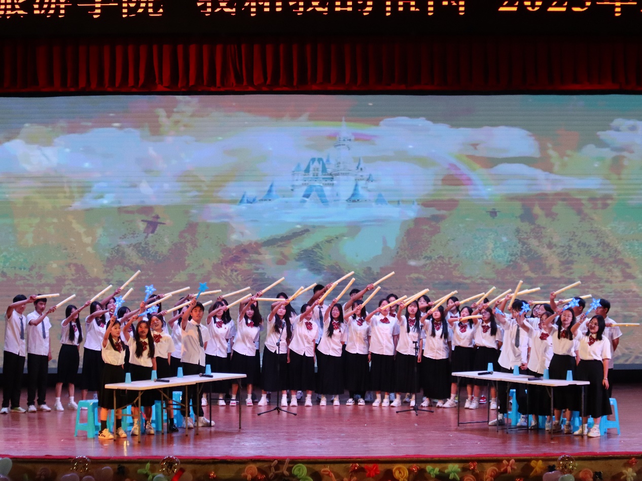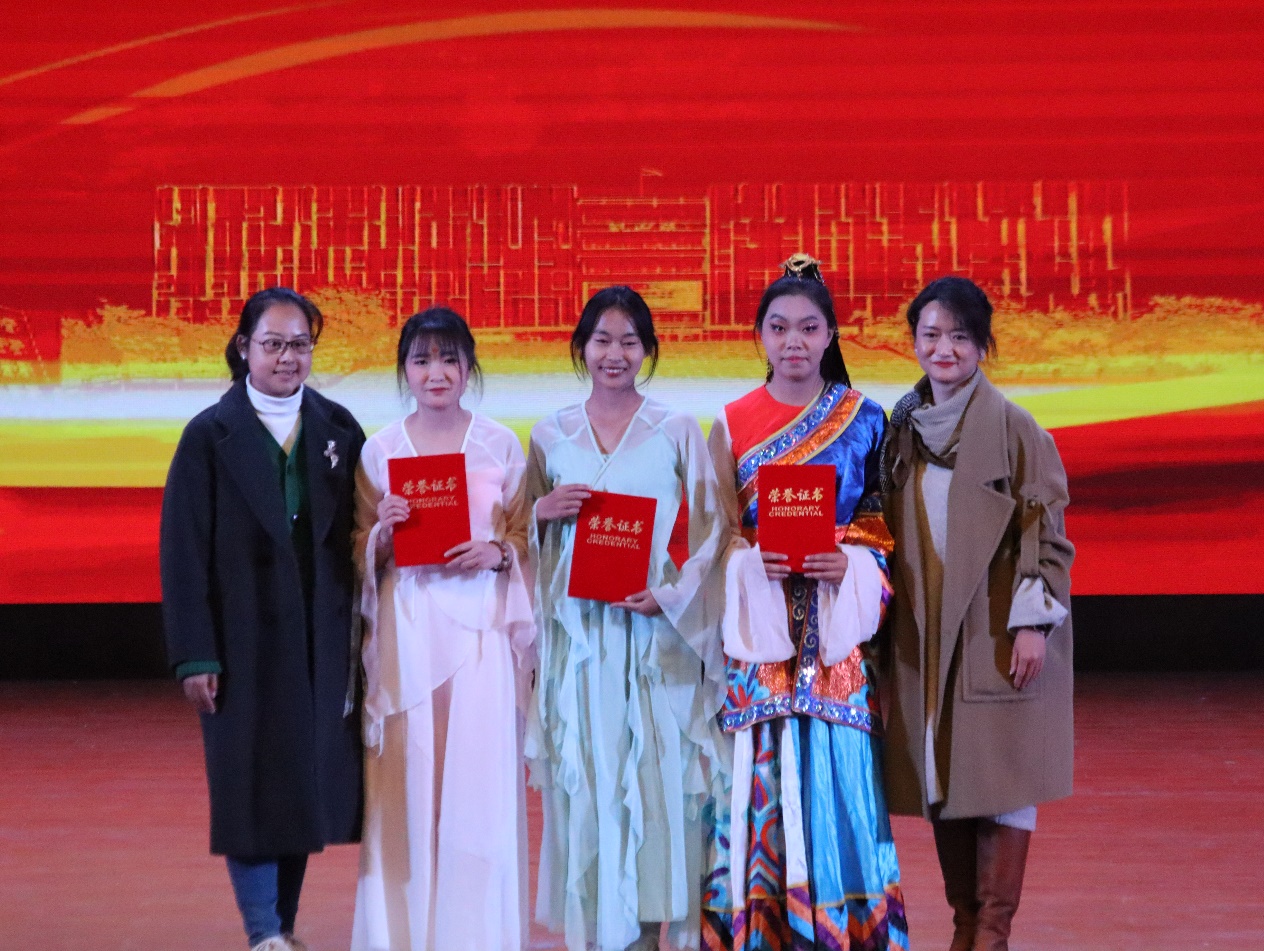 最后,学生的走秀和老师的《如愿》表演,表达了对祖国的热爱和对人民美好未来的希望。颁奖典礼结束,演员与老师一同合影留念。