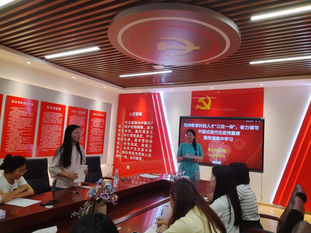 9月4日新葡8883官网AMG官网党委专职组织员刘迪带领2024年入党积极分子集中进行了坚持教育科技人才“三位一体”奋力谱写中国式现代化宏伟篇章微党课学习活动。