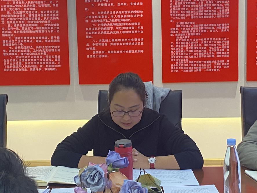 第三项议程,党总支书记张颖对此次会议进行了总结,她表示各党支部要提高政治站位,强化政治担当,以党的创新理论为主题,以学习教育为主线,以提升组织力为重点,强力抓基层打基础,推动基层党建工作全面进步全面过硬。围绕中心服务大局,履行管党治党责任,落实年度重点任务,牢固增强“四个意识”、坚定“四个自信”、做到“两个维护”,政治思想更加坚强,工作措施更加务实,工作效果更加明显。希望2024年工作取得更多成绩。第四项议程,请全体参会人员填写测评表。