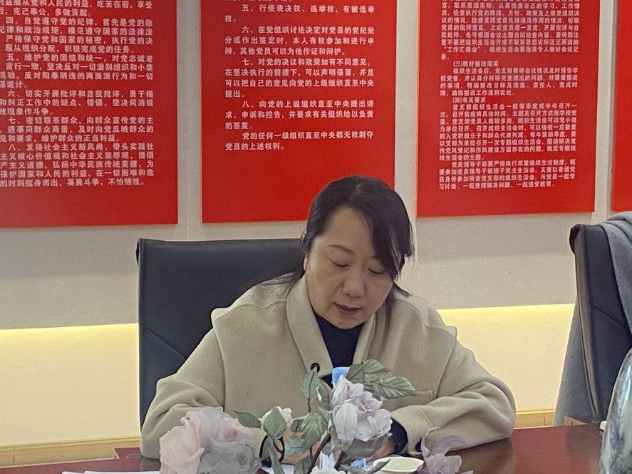 第二项议程,学校党委委员、统战部部长刘燕讲话,她指出一是提高政治站位,持续加强思想武装;二是强化政治担当,严格履行主体责任。坚持把党的政治建设摆在首位;三是党建业务融合,融入中心抓好党建。希望2024年工作要抓理论学习,指导实践工作,抓高“三会一课”质量,形成风清会正的工作氛围,履行第一责任人责任,提高组织力,抓好党建与业务工作统筹,提高党建工作质量与效率;