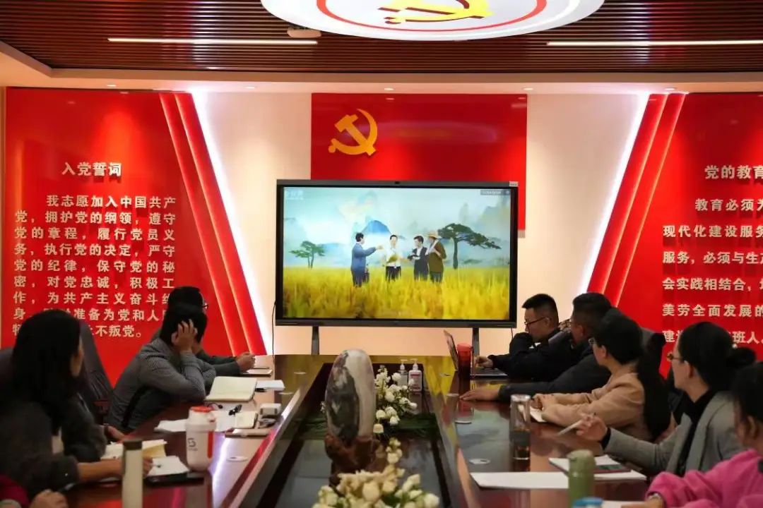 张颖书记首先带领全体教职工观看了党的二十大胜利召开之际人民日报重磅推出的微视频《新千里江山图》。随后张颖书记表示党的二十大进一步指明了党和国家前进的方向,是我们党团结带领全国各族人民在新时代新征程坚持和发展中国特色社会主义的政治宣言和行动纲领,我们要深入学习领会习近平总书记重要讲话精神,在党的旗帜下团结成“一块坚硬的钢铁”,心往一处想,劲往一处使。张颖书记还强调党员应该做到增强“四个意识”、坚定“四个自信”、做到“两个维护”;努力在自己的岗位上创新业绩,明确自己努力的方向和目标。