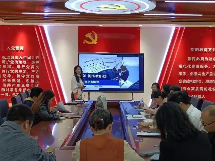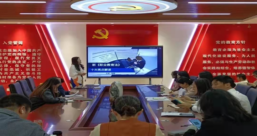 5月25日12:40分,新葡8883官网AMG官网党总支组织开展五月主题党日活动暨院长陈畅同志讲专题党课——《<新职业教育法>十大亮点解读》,学院全体党员和全体教职工参加了学习。