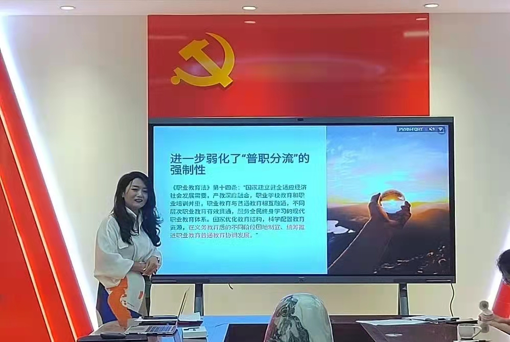 陈畅同志指出,我们学院可以结合新职教法和学院特色,拓展和申报新专业,提升学校的教学水平。同时,坚持目标导向、问题导向和效果导向,对于全面深化依法治教、建设教育强国。新职业教育法的修订,对于全体职业教育工作者来说,既是机遇,也是挑战。机遇则意味着职业教育前途广阔,大有可为。而挑战则是意味着更多的责任,她强调,必须把职业教育摆在更加突出的位置,推进育人方式、管理体制改革,培养更多的高素质技术技能人才、能工巧匠、大国工匠。